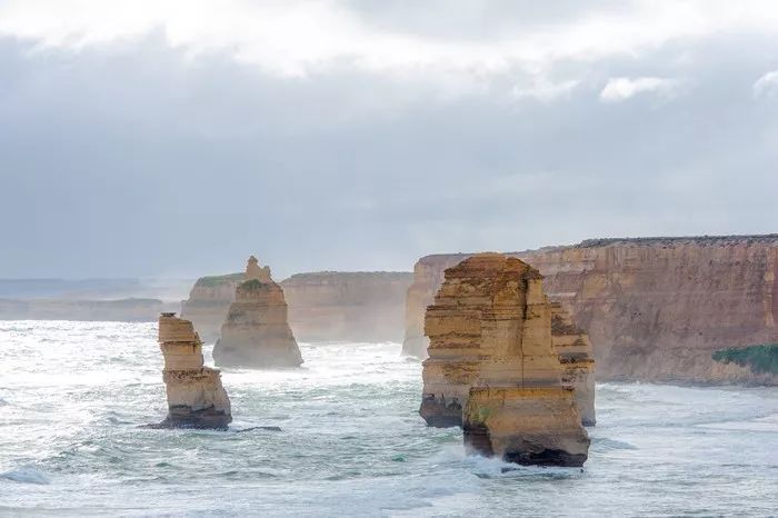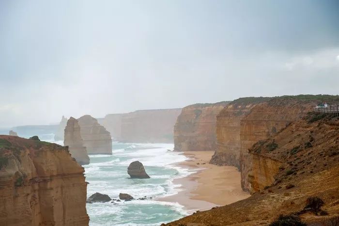 春天海边的风真的很大,再加上下雨其实很冷,就看到吉布森阶梯下海滩上大浪一个接一个,风声和浪声让我们只能远远观望,雨下大了又回车上躲雨,等雨小了又前往十二门徒石柱 。