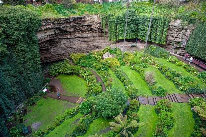 清晨起来在旅馆里休息片刻,我们就前往芒特甘比尔的蓝湖。同样是艳阳高照的湖边,迫不急防的就来了大雨,连太阳都不急切换,湖 边和 我们一起游玩的人们相视一笑,猛的冲向停车场。之后我们去了洞穴花园,这个天然在地面上形成的下凹的大坑真的很大,让人有一种曾被巨大陨石砸出的想象。