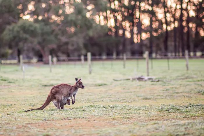 第一晚的夜路伴着大风,我们到达时已经10点了,没想到酒店的老爷爷还一直在为我们留着灯等我们,迎着大风的夜黑风光的晚上,他热情的带着我们拿着手电看到了就在房子不远处草地上吃东西的一大群袋鼠,还有就在我们房子旁边的树上一只不怕冷的抱着树枝摇摇睡觉的考拉。