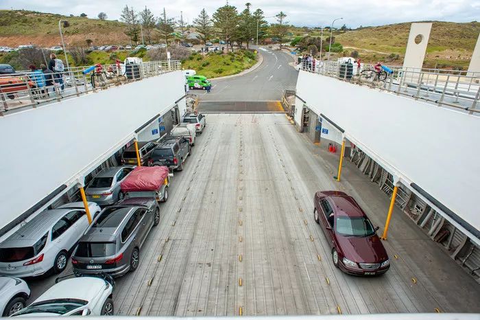 终于混到下午3点到达袋鼠岛港口Cape Jervis,出示了iTrip上提前定好的船票的code换了票,留司机一个人上车把车按工作人员的指示开上船到指定位置停好。