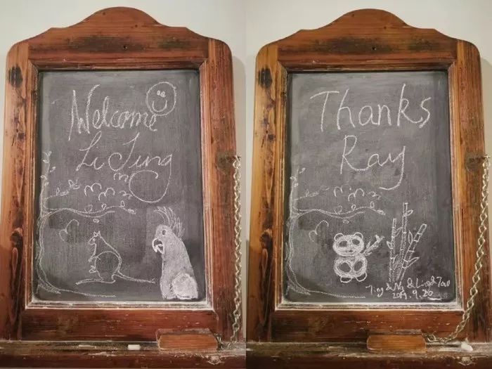 这个小屋是由一对老爷爷老奶奶打理的,他们25年前在这个地方亲手一点点的打造花园,建房,刷漆,建立雨水过滤的利用设备,很多很多事情都由他们自己完成,他们很多细节都很环保,房间收拾的很干净,壁炉上的书架,光碟承载着从前的故事,还有各种可爱的手绘,老爷爷手写的黑板的欢迎辞。