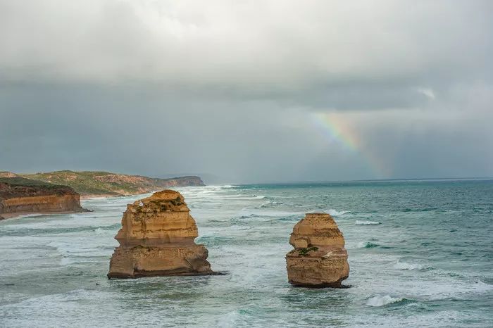 幸运的是在十二门徒我们看到了彩虹,然后又被一阵大雨赶回了车上。再来到洛克阿德峡谷,一看还需要1.5公里的徒步,小伙伴们都表示不去了,万一雨一下大这么大风打着伞也没用,最后只到The Arch简单看了看,就回屋烤肉取暖了。