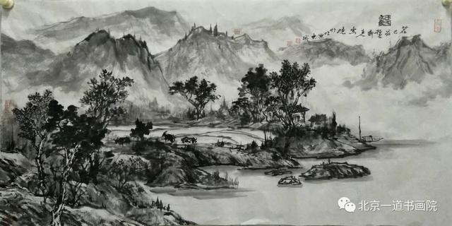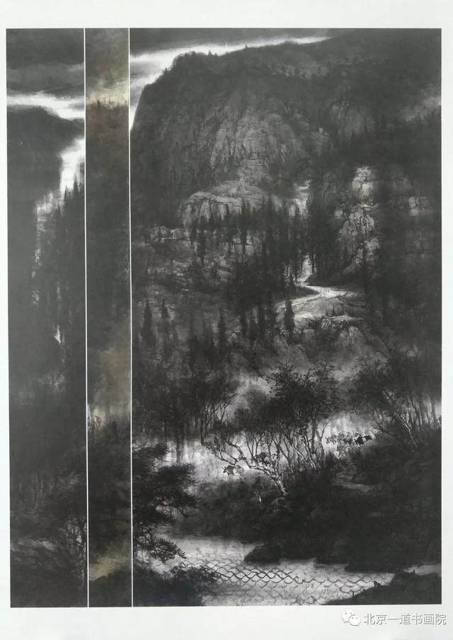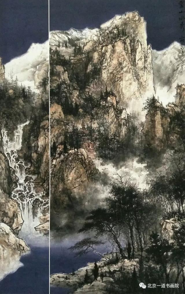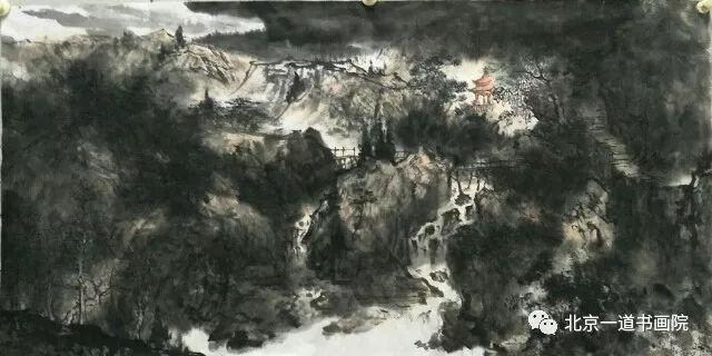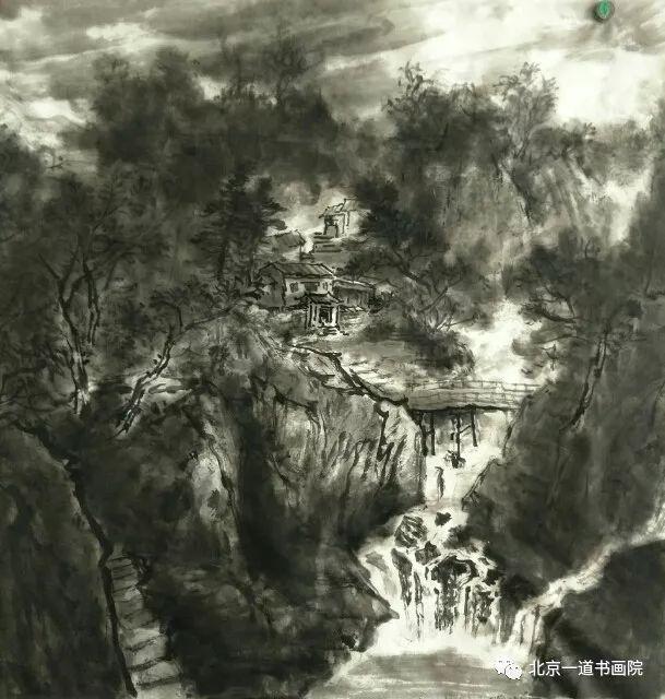 “我画山水不纯是在画水墨风景画、而是游山的散文诗。中国人游山是情怀是寄托、和眼前山水不是主客关系。我不在乎最终能把山水画到哪种程度?而是看重山水能否提炼出不同的笔墨效果。人面对山水的那种气场无法复制。我的山水就是在画、面对山水那一刻的内心状态。”