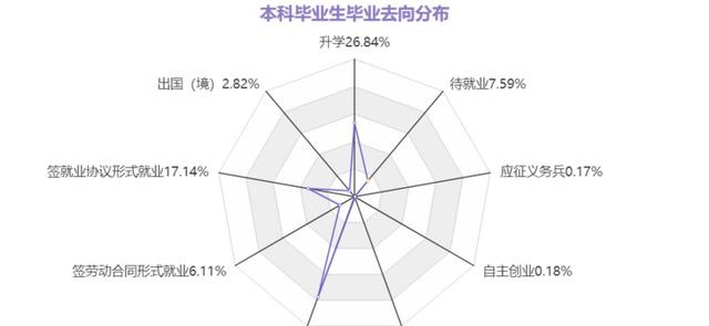 至于本科毕业生的去向分布,下图可以看出,升学的占26.84%,出国的占2.82%。