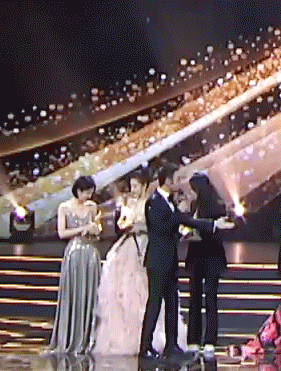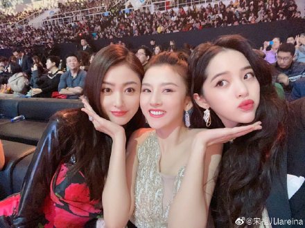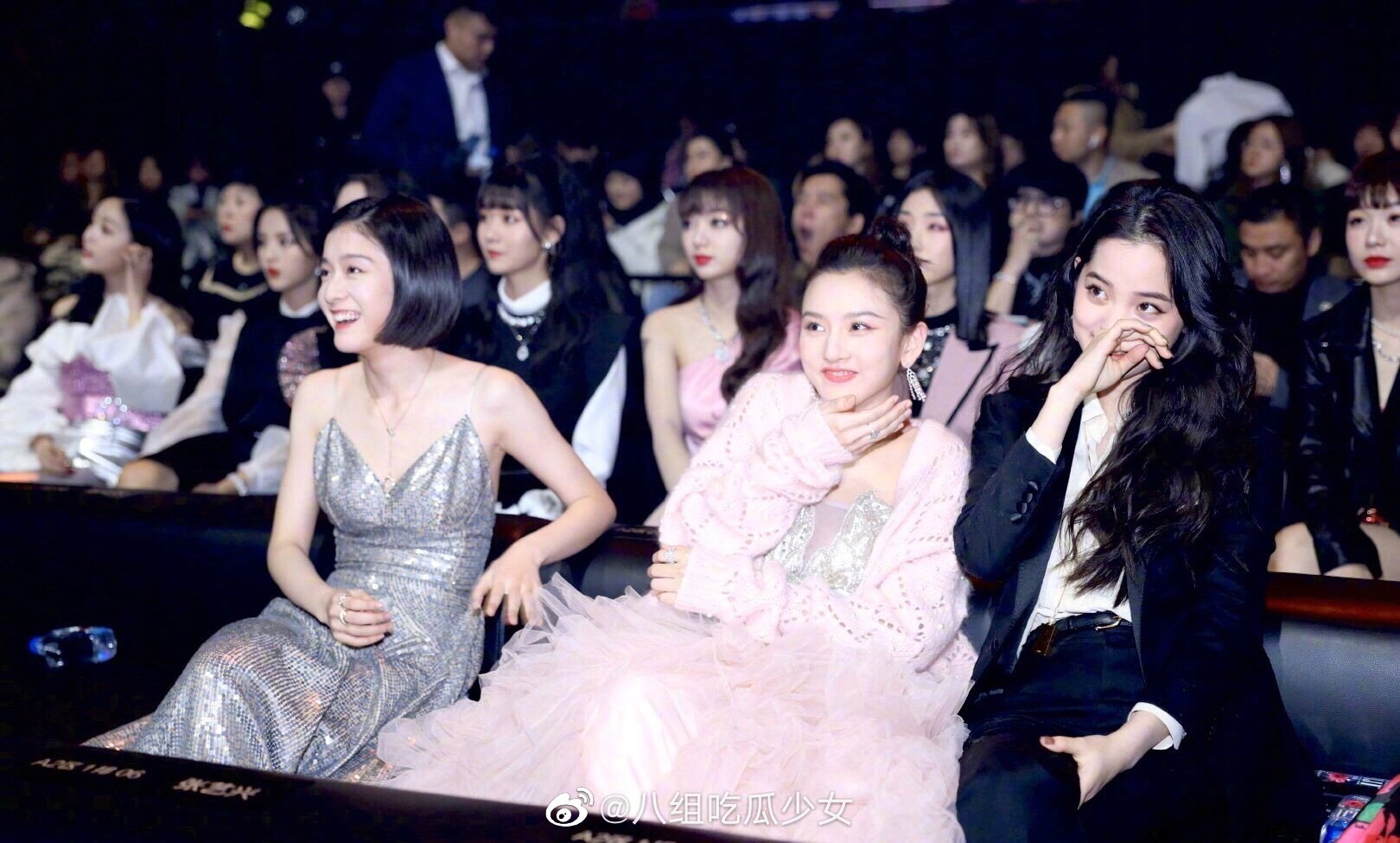在微博之夜跟小姐妹拿起奖杯竟然碰起杯来,