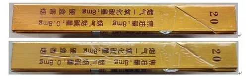 真品卷烟:透明纸中间烫封平整紧实,一般能看到烙铁印痕痕迹。