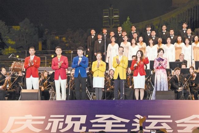 奥运会冠军郭文珺等陕西省优秀运动员参加庆祝全运会举办60周年户外交响音乐会。