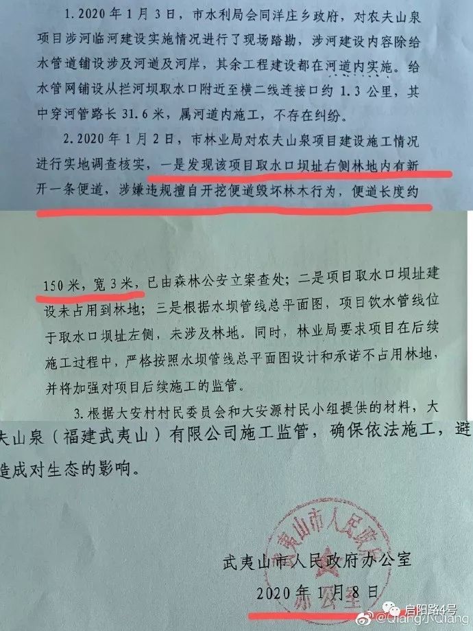 在她看来,武夷山国家公园管理局虽然对举报中所涉及的“取水点”、“取水点旁的施工便道”以及“运输便道”三个地块的细节进行了说明,但对农夫山泉是否违规毁林一事并未直接回应。