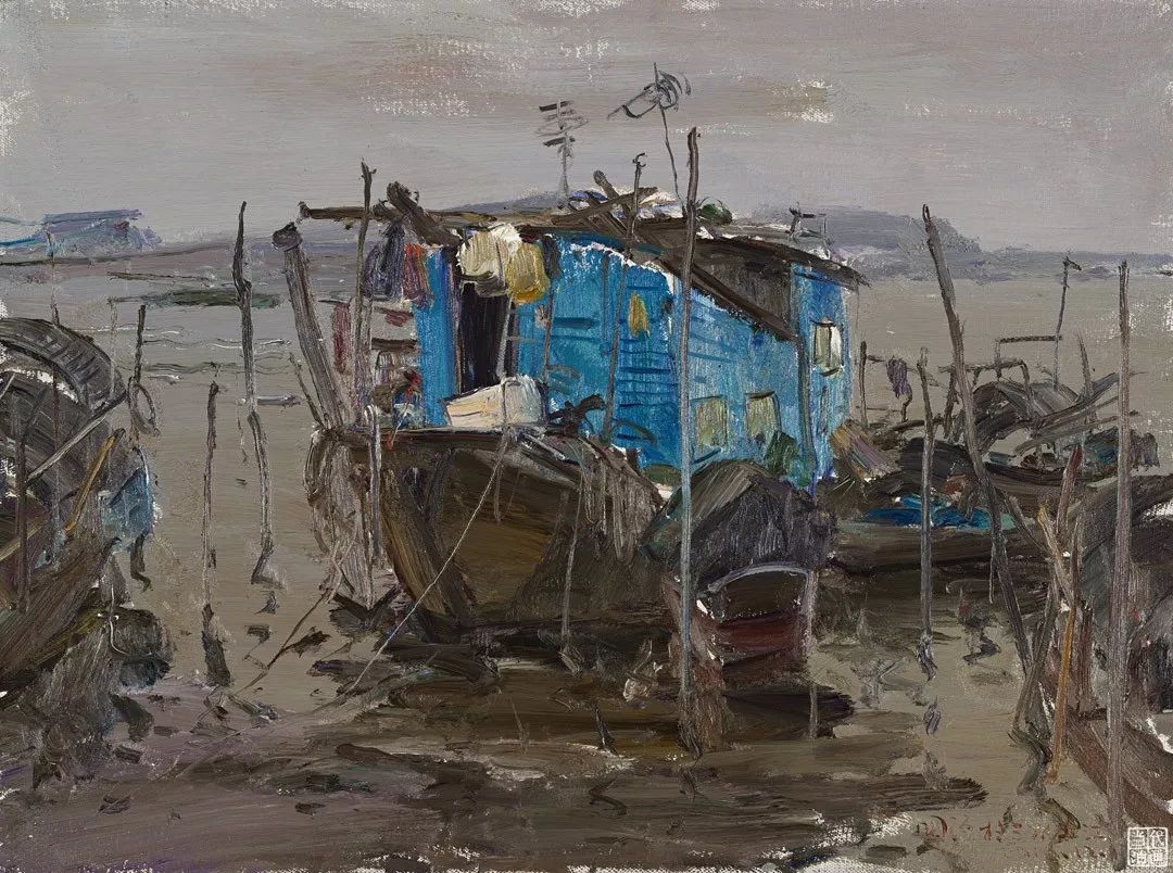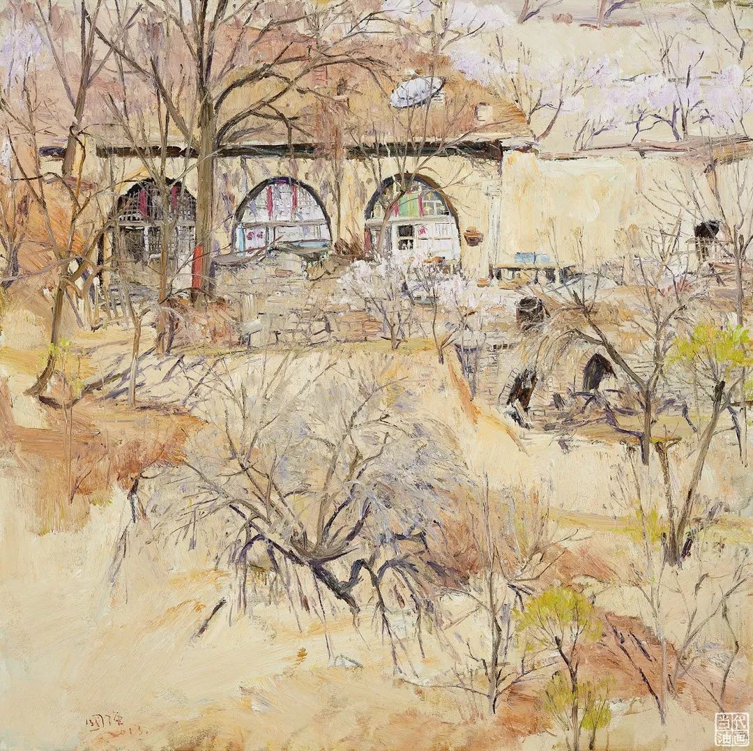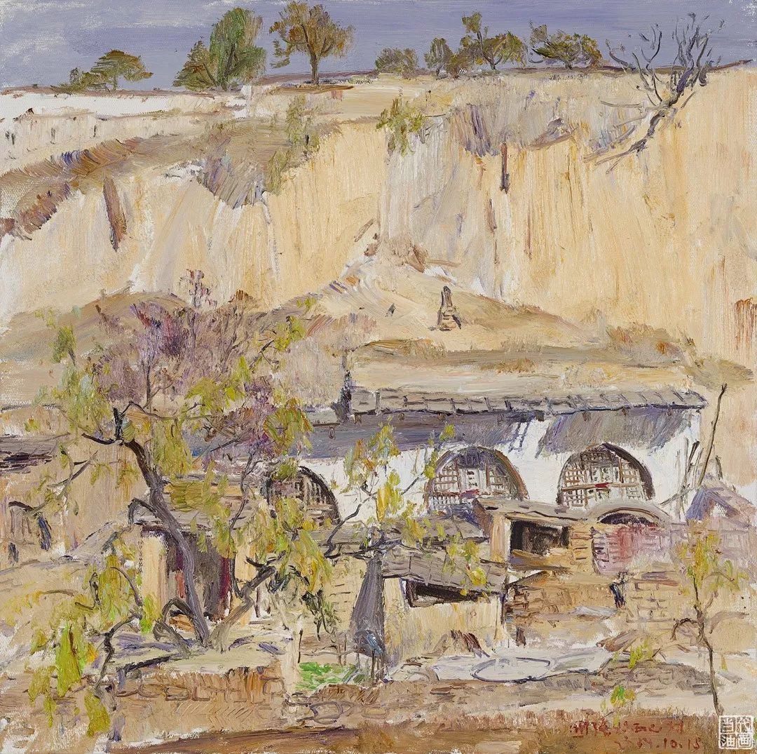 国强多年如一日画了许多大全景的黄土高坡,给我印象最深的是那些顺光的,几乎没什么阴影,干爽得很,大大方方,用笔很自然,坦然而沉醉,一点没有描描抠抠的毛病。 后来,又见他开始画印度的码头,画新的景致,舒展开新的视野、新的心境,比过去更开阔。
