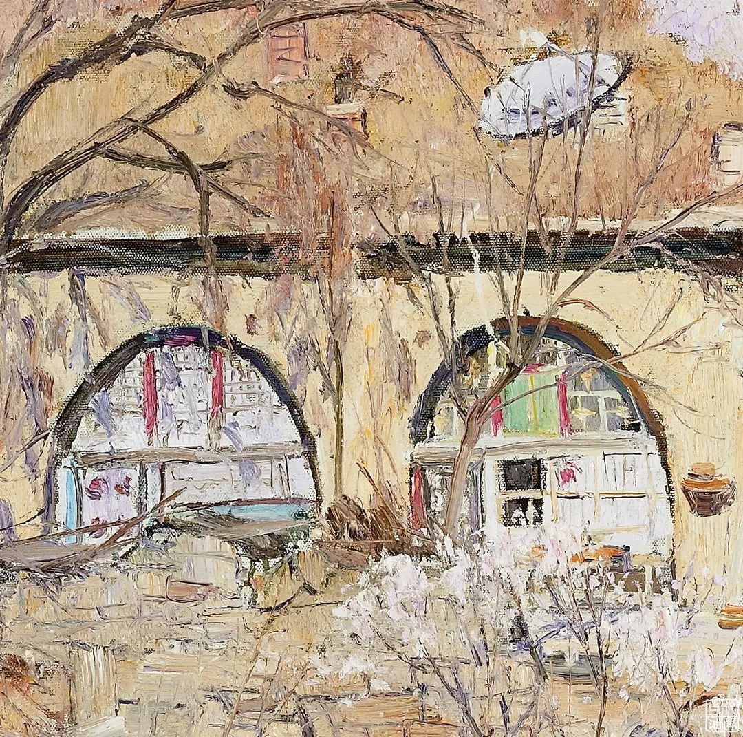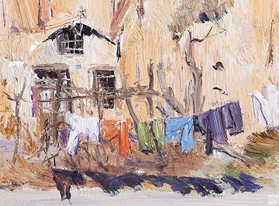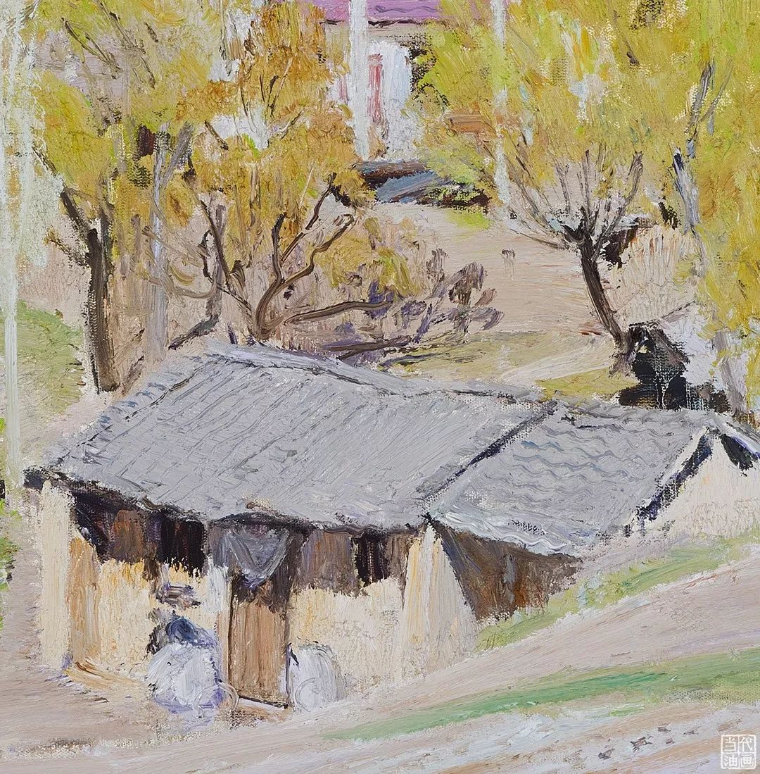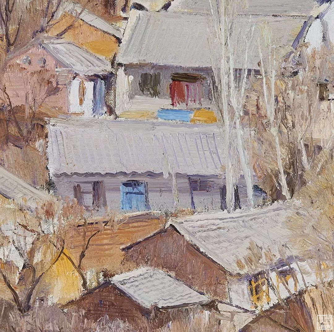 常说作品是作者的精神自画像,无论什么题材,画风景、静物都一样。 这在崔国强的作品里不错,尤其是拿他几十年作品的整体来看更是如此。 我喜欢他的淳朴,就像他的画面总是在讲他亲身经历、亲眼所见的村村镇镇、沟沟坎坎,同时我也喜欢他天然的机巧,他的画笔生动传神,他的画笔是有温度的,淳朴和灵性二者之间有平衡,有张力。