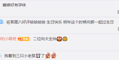 然而,眼尖的网友发现向佐送的生日蛋糕也是暗藏深意,一只大的猴子,一只猪,是爸爸妈妈的属相,而向佐和郭碧婷是同一年的,两人都是属鼠。而蛋糕上却是三只老鼠,而今年又是鼠年,难道第三只老鼠代表着郭碧婷有喜了?怀孕实锤?