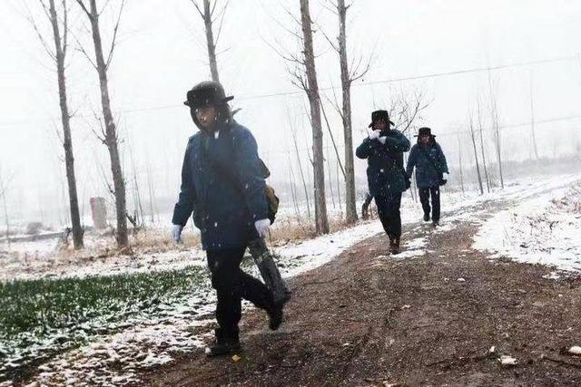 刚上来,有风雪相伴,还格外兴致。巡视十余处重点跨越后,脚开始打滑,风雪也长了眼似的直往脖子里灌,可是他们仍坚持一步步往前。累了,就停下来喘喘气;渴了,喝口随身带的茶水;饿了,吃块随身带的饼干……雪依然下,两行深浅不一的脚印沿着线路方向消失在那暮霭中。