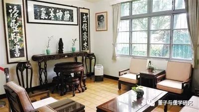 “素书楼”共三层,第一层有大客厅兼讲堂,晚年钱先生為研究生上课、会客就在这里。钱先生曾说:“其实我授课的目的,并不是教学生,而是要招义勇兵,看看有没有人自愿牺牲,要為中国文化献身的中国人。”学中国文化而要有献身精神,这是何等悲切,又是何等决心!所以讲堂悬掛的是朱熹手写的对联碑帖:“立脩齐志,读圣贤书”,横联是“静神养气”四个大字。钱先生显然是以承继朱子的道统、学风自期和勉人的。故朱子的形象在这裡如此高大醒目。