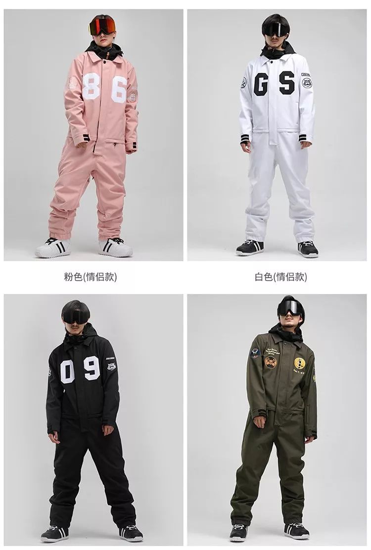是连体滑雪服的传统款式,连身的设计可以避免衣服内掉落雪,而且比较修身的设计,也能展示出优越的身材。
