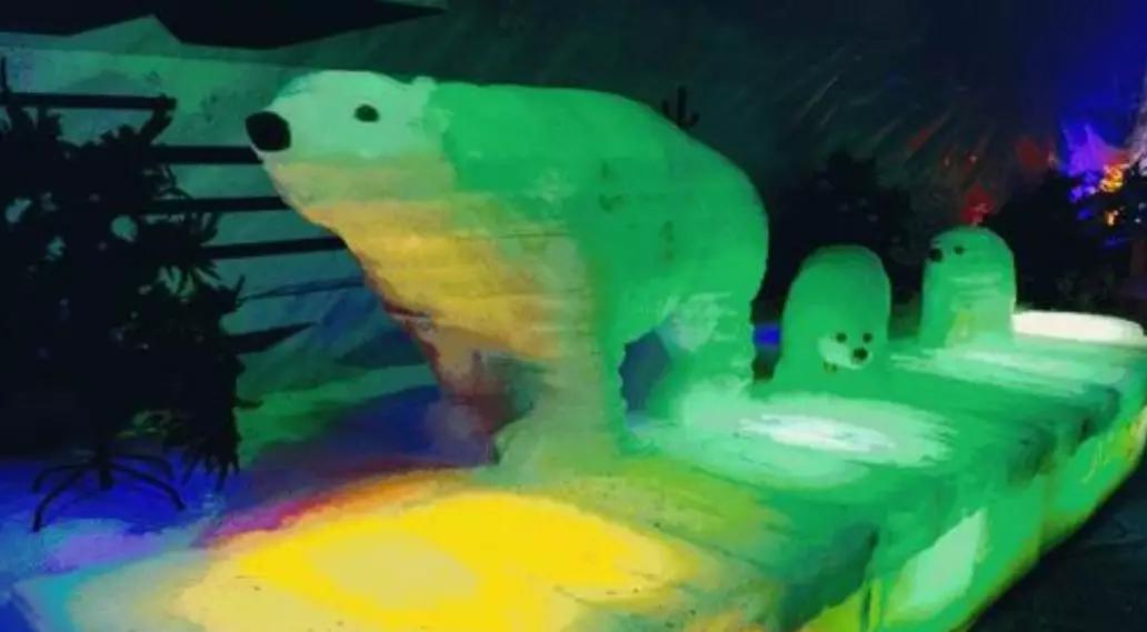 冰上观赏项目: 冰灯、冰迷宫、五彩冰洞、冰川漫步、冰山、冰瀑、冰封动物、穿越冰山、冰上影院、冰河世纪实景互动