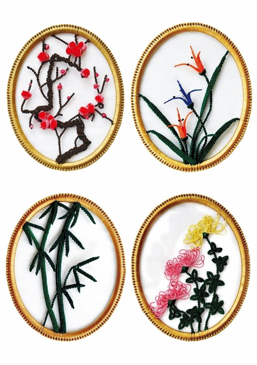 金慧娟的作品由吉祥挂饰和编结服饰两大系列组成:吉祥挂饰系列有大型壁挂,室内挂件,汽车挂件等;编结服饰有手链、项链、腰带、拖鞋、古典盘扣等。几十年来,她针线从不离手,在传统技法上潜心专研,大胆创新,它的作品结构巧妙,样式繁多,做工精细,令人赞叹,作品至今仍供不应求。
