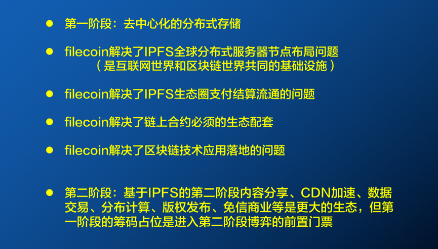 如果Filecoin今年能安全稳定地上线,它很有可能成为区块链行业第一个现象级的落地应用,它用区块链技术打通了生产关系,解决了人工智能发展缓慢最重要的关卡。Filecoin是集账本技术、智能合约、激励机制等于一体的解决方案,解决了全球节点分享和贡献的意愿,有了这个才会有全球的节点来分享数据、资源、带宽、存储等。