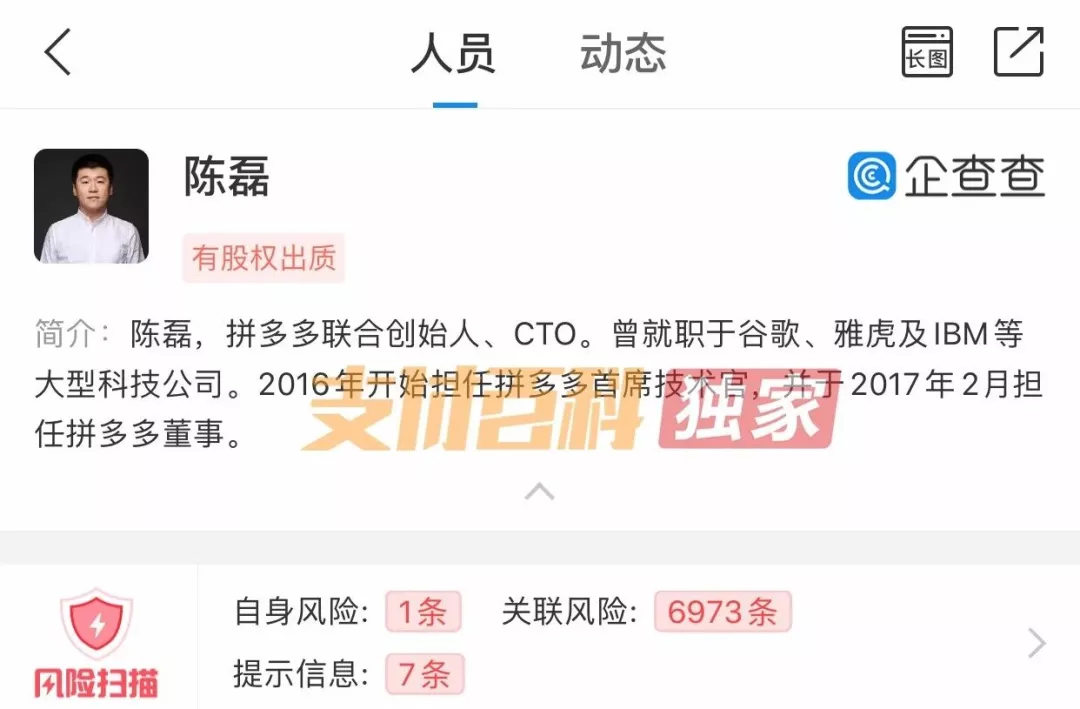 上海易翼信息科技有限公司法定代表人为陈磊,陈磊为拼多多联合创始人、CTO,于2017年2月担任拼多多董事,拼多多创始人黄峥任上海易翼信息科技有限公司监事一职。目前,拼多多(上海寻梦信息技术有限公司)由陈磊实际控制,持股比例86.57%。