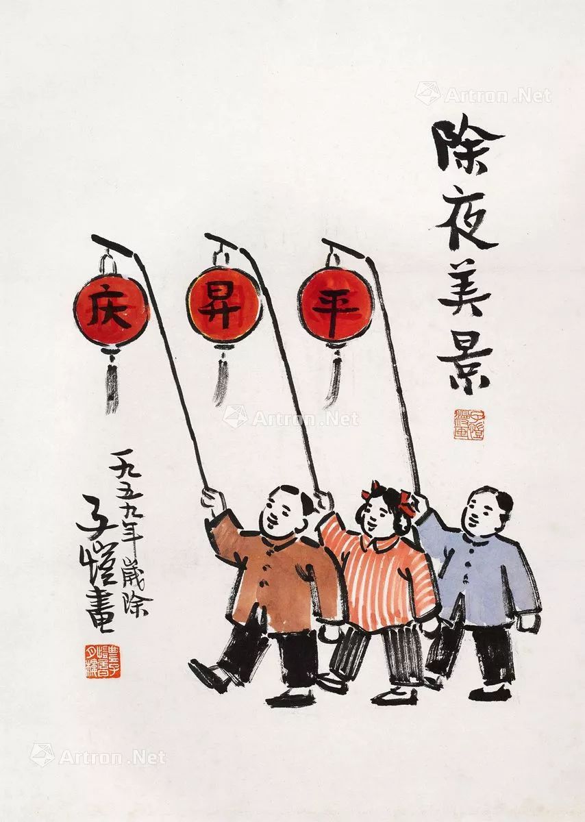 平时折好了供在堂前,不许打开来看,这时候才展览了。祭品盘上的红纸盖都是我的姑母剪的,“福禄寿喜”“一品当朝”“连升三级”等字,都剪出来,巧妙地嵌在里头。我那时只有七八岁,就喜爱这些东西,这说明我与美术有缘。