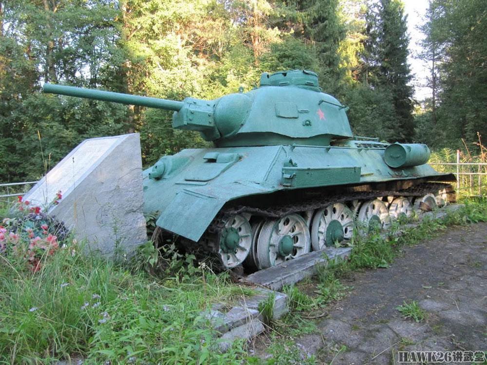 4. 带补丁的纪念碑。在卡累利阿地区的Sambatuksa村,有一辆带有UZTM炮塔的后期型T-34坦克纪念碑,坦克炮塔的左侧和后部有方形的补丁。有消息表明,这辆坦克在战斗中被击毁,坦克车组的遗体被埋在坦克的旁边。