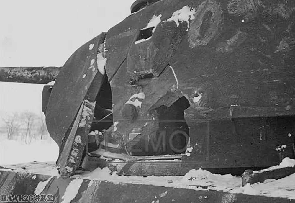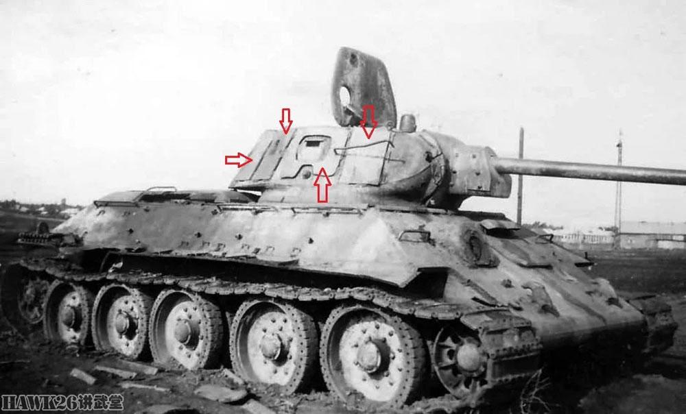 由于采用劣质装甲或违反制造工艺等原因,T-34装甲甚至可能在敌方炮弹没有穿透的情况下就破裂。这辆T-34坦克1941型的炮塔被德军几枚炮弹击中,结果装甲上就出现了裂缝和剥落。但坦克内部并没有受损,因此采用其他的装甲板焊接到受损部位。这辆返回前线的坦克依旧保持了炮塔装甲的完整,还多了附加装甲,不过这依旧没有什么帮助,它还是被德军击毁了。
