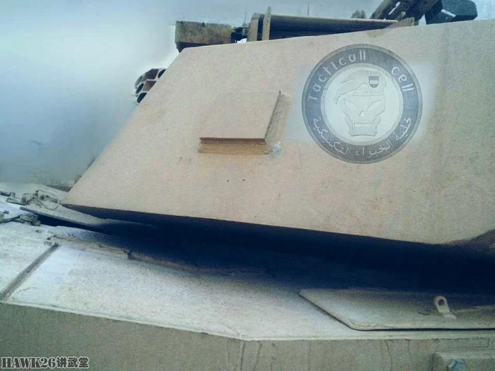 在战乱地区,还是能在坦克上找到类似的钢铁补丁。这是一辆伊拉克陆军的M1A1“艾布拉姆斯”主战坦克,炮塔右侧就有一个方形补丁。