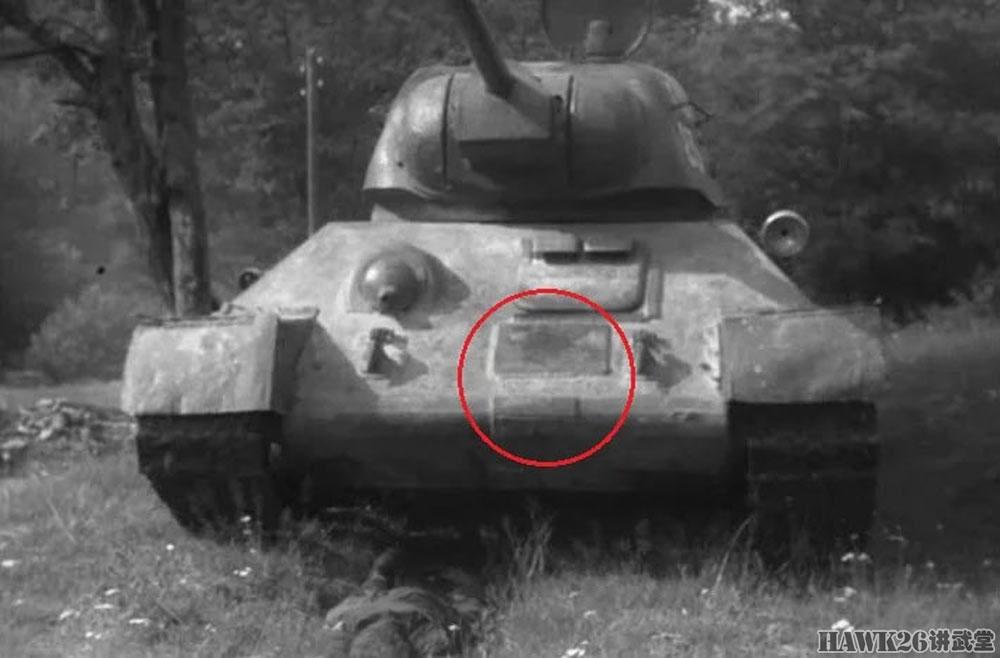 3. 车体正面的两块补丁。这辆乌拉尔机车厂(UZTM)制造的T-34坦克车体正面有两块矩形补丁,仿佛是身经百战的勋章。