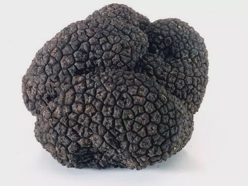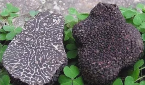 黑松露也称块菌,是一种生长于地下的野生食用真菌,外表崎岖不平。色泽介于深棕色与黑色之间,呈小凸起状,遍及灰色或者浅黑色与白色的纹理。