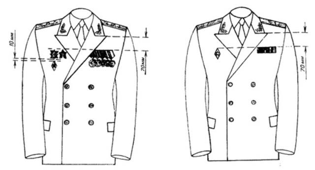 勋章佩戴位置,包括全尺寸勋章和勋表。