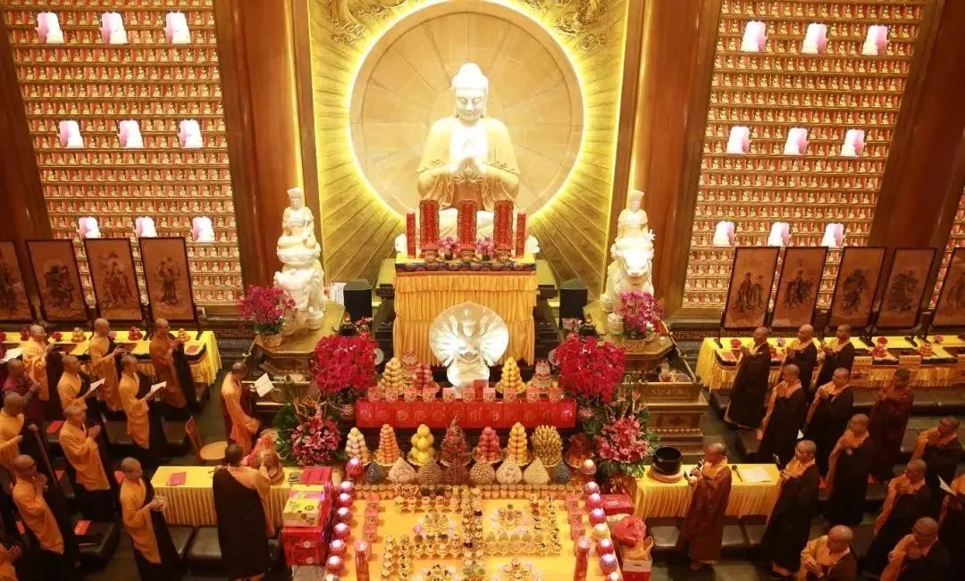 2020年1月25日正月初一,凌晨四点半的广州大佛寺,常住僧众整齐排班,云集毗卢殿,庄重举行新年供诸天及祈福消灾普佛法会。由于新型冠状病毒性肺炎疫情日趋严峻,大佛寺积极响应上级部门的号召,从1月24日起暂停对外开放。