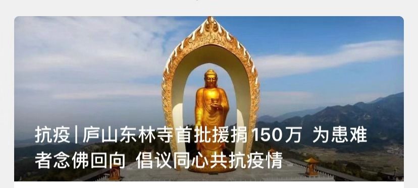 2020年1月27日,经东林寺常住批准,庐山东林寺慈善护生会首批分别向江西省慈善总会、湖北省慈善总会、九江市慈善总会援捐各50万,共计150万。
