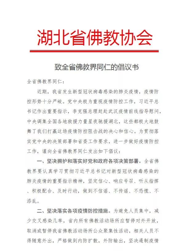 附:湖北省佛教协会致全省佛教界同仁的倡议书