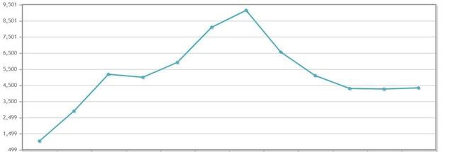 2007-2018西班牙进入破产程序的企业数量 / 西班牙国家统计局