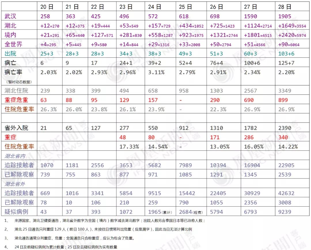这是根据国家、湖北卫健委并不够清晰明了的总通告,分别计算出湖北省内、湖北省外的各项数据。