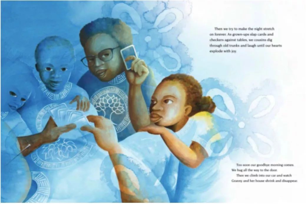 “清晨,我们赶在日出之前起了床。爸爸哼着歌,把行李和满满一包食物装进了车里。他说,再没有什么比回老家更开心的了。”