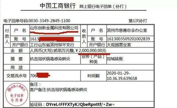 1月29日,山东创新金属科技有限公司向滨州市慈善总会捐资200万元,另有200万元定向捐赠邹平市,共计捐款400万元。