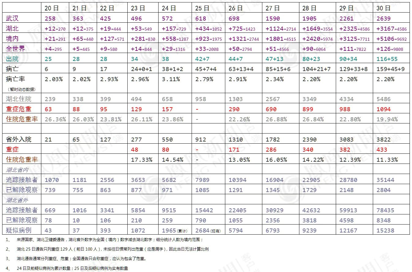 全国病例人数近万人(9692例),再加上约1.5万疑似病例、10万多正在接受医学观察的密切接触者。几乎可以肯定明天(2月1日)确诊病例人数会过万,并且很快达到当年SARS半年传播周期的国内总感染人数的2倍。