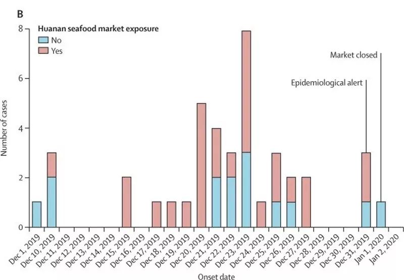 但实际上,这最初的41中,只有27人去过市场。尤其是12月1日就诊最初的第一人,10日就诊的3人中的2人,就都是和市场无关联的患者。