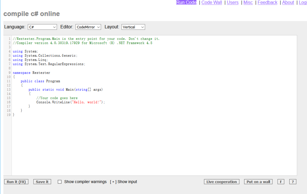网站地址:https://rextester.com/