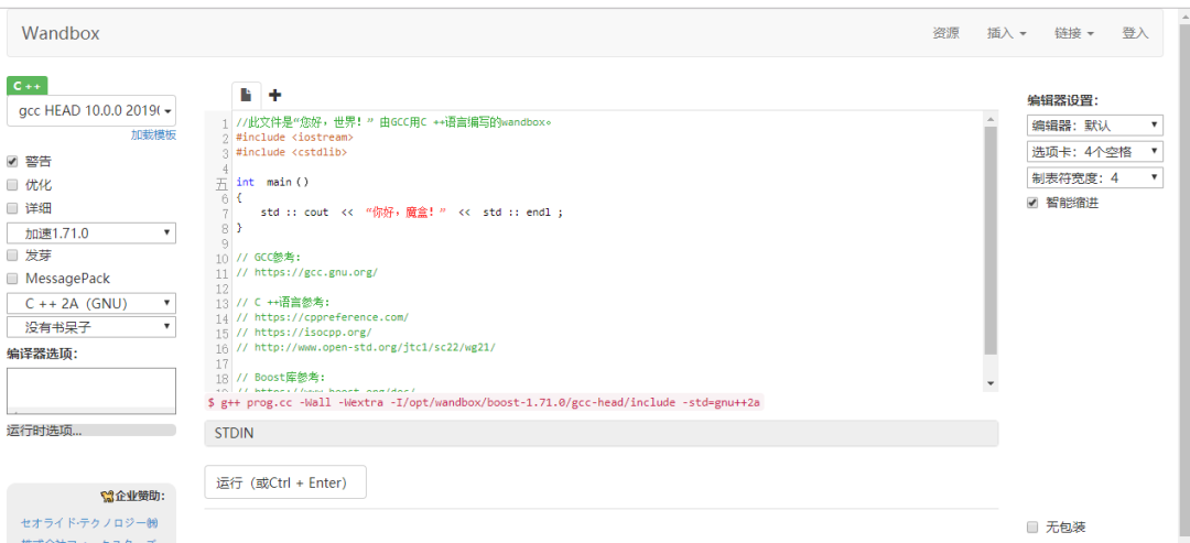 网站地址:https://wandbox.org/