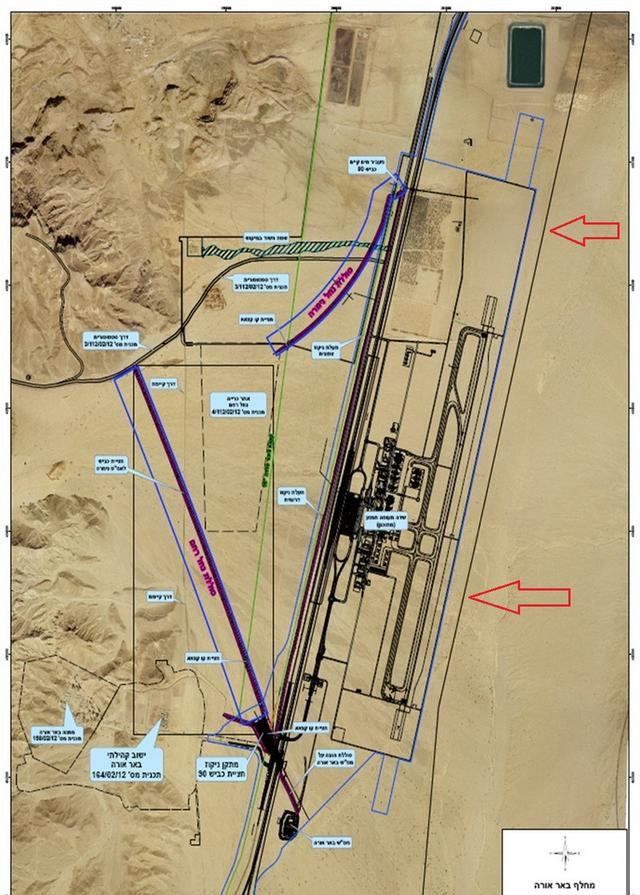 拉蒙国际机场平面图,箭头处就是以色列和约旦边境