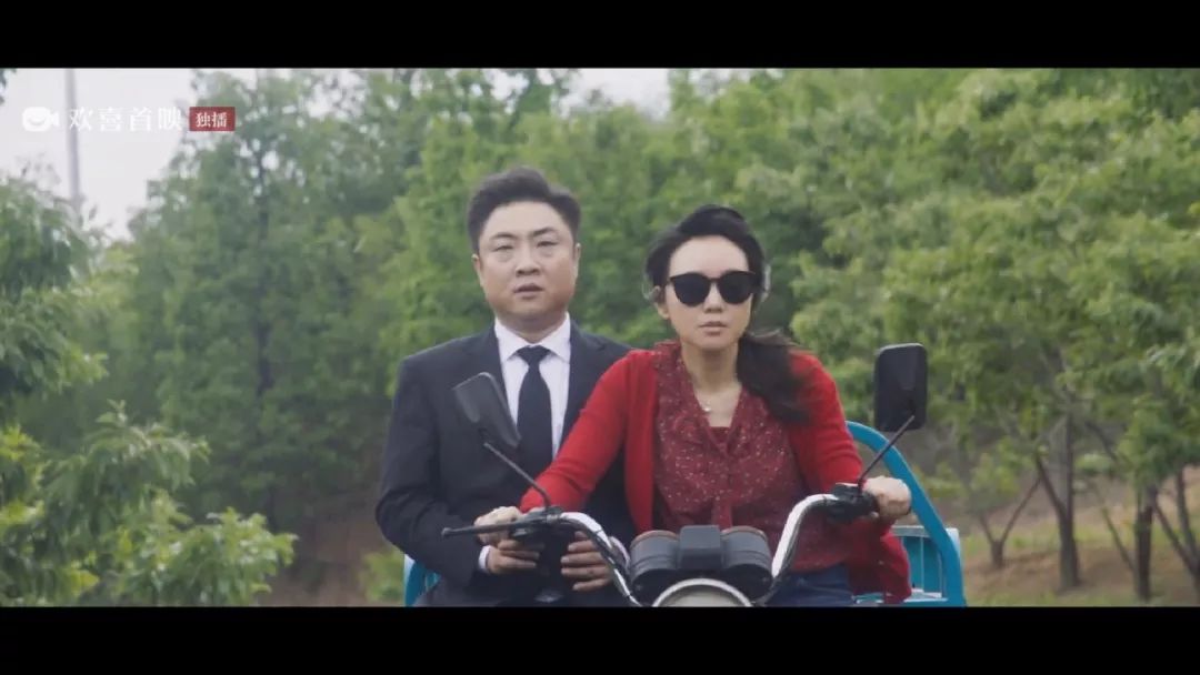 彩霞一脸淡定地戴着墨镜在乡间小路开翻斗车,载着余凯旋去找收信人,也是这部电影让人笑出蛙叫的场景之一。