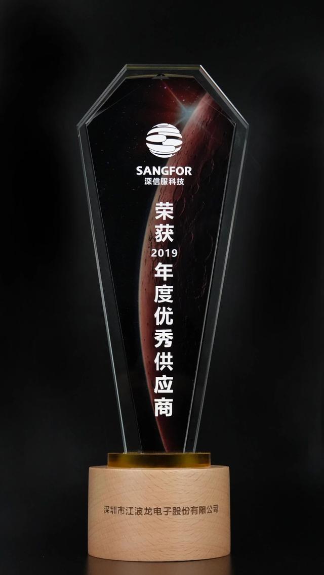 基于多年的友好合作和对彼此的信任,在会上,深信服授予江波龙(Longsys)“2019年度优秀供应商”称号,并现场颁发奖杯。