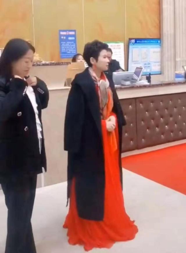 不过在和演艺圈外人士合影时,董文华又恢复了舞台上的状态,一袭亮色调礼服明艳大气,和她的曲风格外般配。