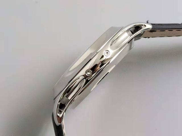 搭配黑色牛皮材质表带,纯进口手工缝制(当然后期也可以自行更换鳄鱼皮提升质感),搭配方形刻度以及三角叉扣,凸显腕表整体优雅气质。