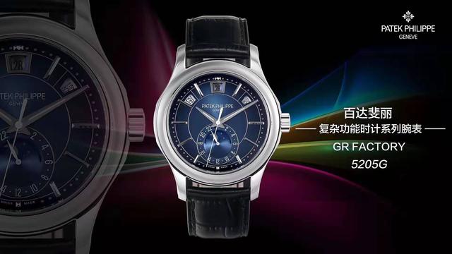 其中复杂功能时计系列的月相年历腕表延续了品牌一贯的经典设计,加入了实用性强的年历功能和月相功能,演绎出精巧工艺和实用功能的完美融合。今天我们就以GR副本百达翡丽5205G-013为大家做一下测评。