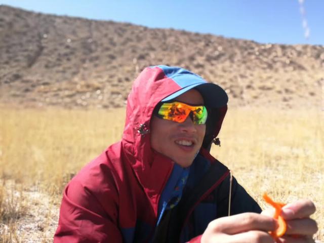 第二天天气晴朗,我们已经到昆仑山死亡谷东边的尽头了,这也意味着我们快要出山了。由于海拔降低,这边的植被已经长到了跟人差不多高,河边有一棵白刺果,果实非常甘美。而河道往北的拐弯处,分布着很多形状怪异的石头,增添了一丝诡异感。