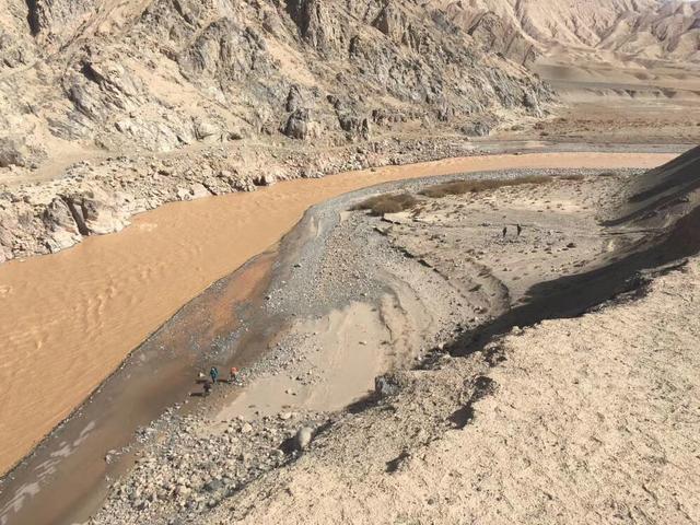 10月11日,清晨起床后,天气特别晴朗,河面结了一层冰,美妙与寒冷并存。我们还是一如既往地前行,当天气温较高,大家的饮水量都增大了,中午时分,水已喝得所剩无几。于是,我和队友“土匪”去河边取水。那棱格勒河浑浊得让人感到伤悲,我们挖了沙坑,让水慢慢净化,本次带来的净水器太小,以至于净水速度很慢。在回去的路上,我和“土匪”碰到了来山谷找我们的“行者”。