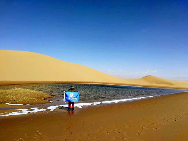 10月3日早上,按照原计划,我们上午轻装去看库木库里沙漠中的沙子泉,然后再返回营地。但此时沙漠西北方乌云密布,似乎随时可能发生暴风雪,于是两名队友决定留守营地,另外4人便往那棱格勒河方向走去,不料河水冰冷刺骨,途中又有2名队友放弃,只剩我和“行者”继续往沙漠走去。