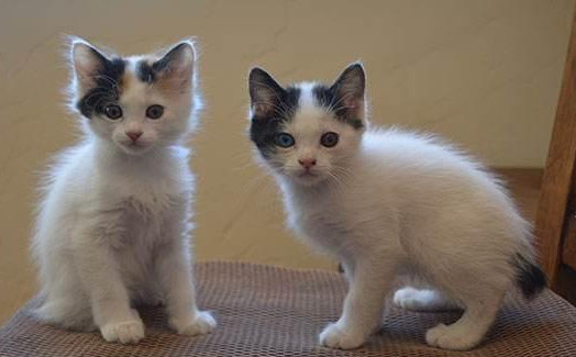 玳瑁色与白色相间的短尾猫在日本被称为Mi-ke,是最受人们喜爱的毛色和图案。而鸳鸯眼的Mi-Ke猫要比它们的蓝眼或金眼亲戚更珍贵。这种猫应该有着瓷器一样的体态,配以纯白色的被毛和最少的艳丽色斑。